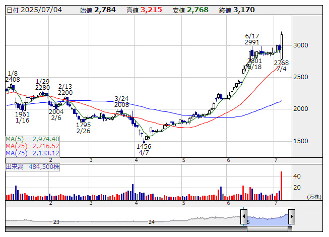 キユソ流通 <日足> 「株探」多機能チャートより―決算で買われた銘柄! 上昇率ランキング―