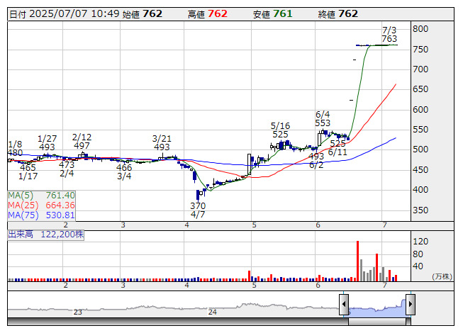 鉱研工業 <日足> 「株探」多機能チャートより■財務省 : 7月7日受付