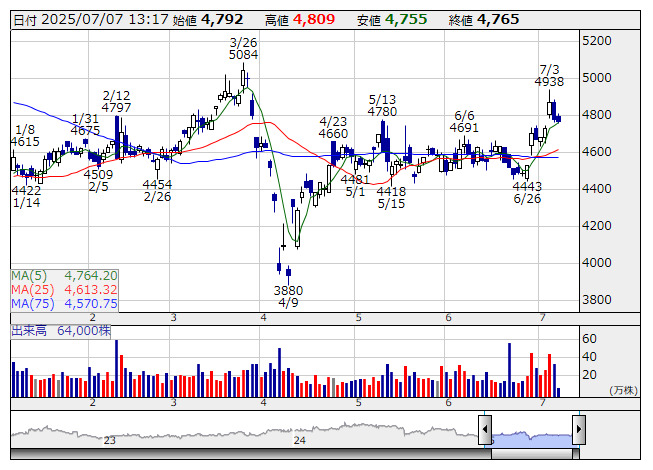 DOWA <日足> 「株探」多機能チャートより■財務省 : 7月7日受付