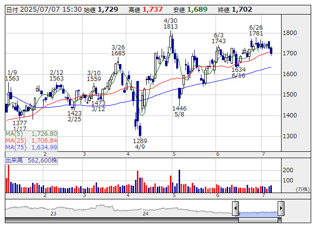 ネクステージ <日足> 「株探」多機能チャートより上期において、商品ラインアップの充実を図ったことが奏功し、販売台数が想定以上に増加したことが牽引する。また、販管費の抑制を行うことで、利益が想定以上に改善したことも寄与する。