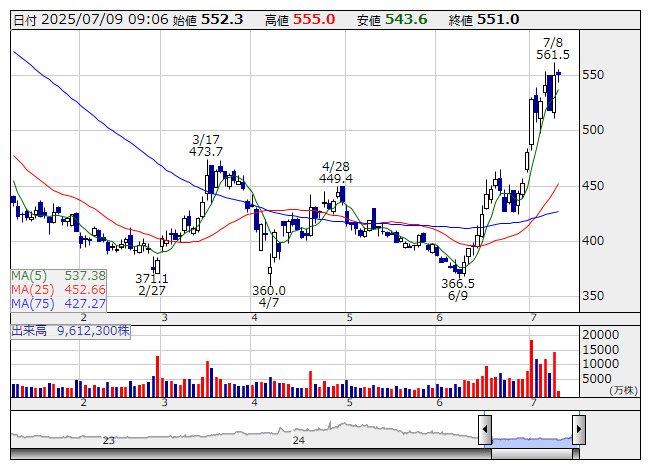 9. <285A> キオクシア 東証P 2,328 2632 ( +3.1 ) 半導体関連