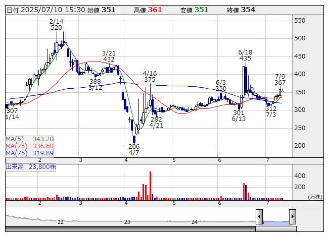 ジーネクスト <日足> 「株探」多機能チャートより■財務省 : 7月10日受付