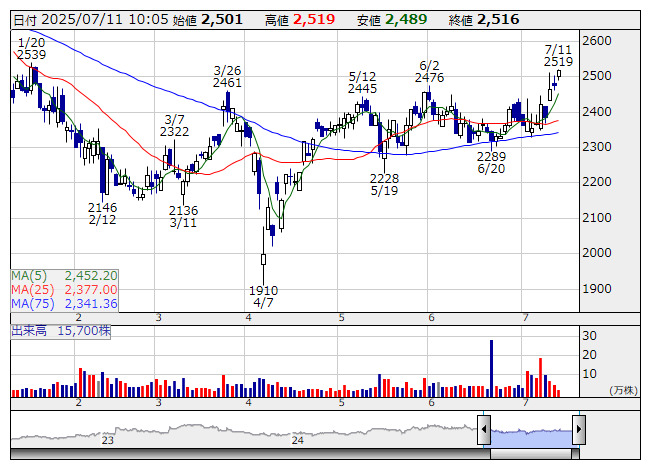 2025年07月11日10時08分 【材料】グリムスが3日続伸、光通信が5.03%保有で思惑働く グリムス <日足> 「株探」多機能チャートより グリムス<3150>が3日続伸している。10日の取引終了後に関東財務局に提出された大量保有報告書で、光通信<9435>グループの光通信の株式保有割合が5.03%となり、新たに5%を超えたことが判明したことで、需給思惑から買われているようだ。保有目的は純投資で、報告義務発生日は7月3日となっている。 出所:MINKABU PRESS