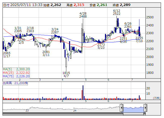 ドーン <日足> 「株探」多機能チャートよりドーン<2303>は10日、2025年5月期決算を発表した。売上高が前期比9.7%増の16.46億円、営業利益が同7.7%増の5.74億円、経常利益が同6.8%増の5.84億円、当期純利益が同7.9%増の4.18億円となった。