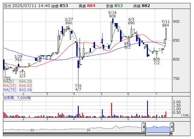 【材料】丸八倉が上げ幅を拡大、25年11月期業績予想を下方修正もアク抜け感強まる