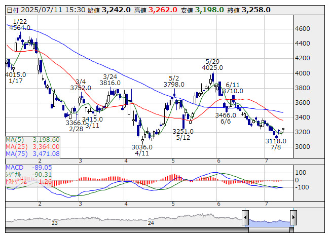 <8795> T&Dホールディングス 3254 +86 ( +2.7%) -5.0