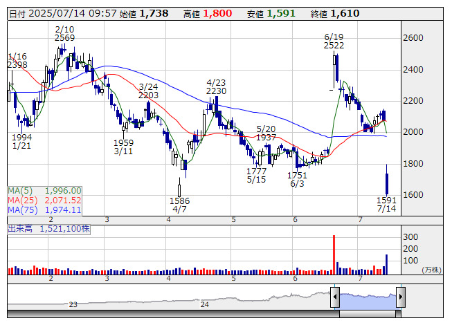 【材料】IGポートが急落し下落率一時20%超、映像制作事業の損失拡大し前期利益は計画下振れ