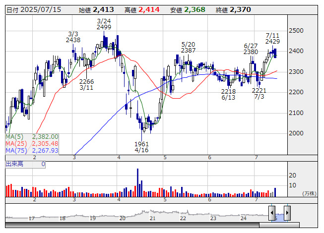 トランザクション<7818>は大幅高。14日取引終了後に24年9月~25年5月期連結決算を発表した。売上高は前年同期比9.9%増の207億7300万円、営業利益は同7.5%増の42億8100万円だった。エンターテインメント業界向けの物販品などを手掛けるライフスタイルプロダクツ部門が推し活消費を追い風に売り上げを伸ばした。環境配慮製品を手掛けるエコプロダクツ部門が堅調だったほか、衛生用品や加湿器、化粧雑貨を扱うウェルネスプロダクツ部門が好調だった。良好な決算内容が好感され買われている。