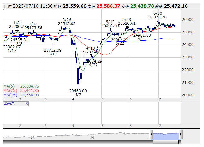 JPX日経400 <日足> 「株探」多機能チャートより1 データセンター