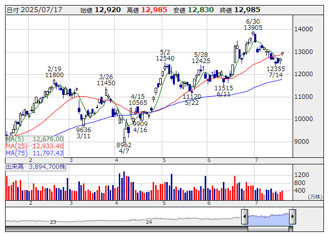 <6501> 日立 42053 ( 99) 4,249 +13 ( +0.3%)