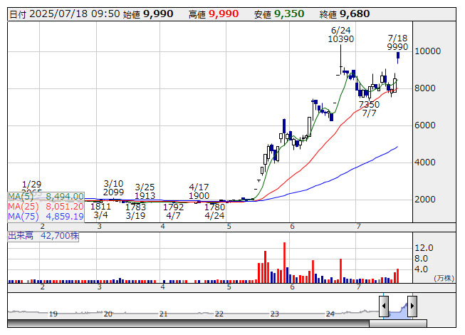 2025年07月18日09時50分 【材料】コンヴァノが3連騰、8月1日を基準日として1株を10株に株式分割へ コンヴァノ <日足> 「株探」多機能チャートより コンヴァノ<6574>が3連騰している。17日の取引終了後に8月1日を基準日として1株を10株に株式分割すると発表したことが好感されている。投資家がより投資しやすい環境を整えるため、株式分割により投資単位を引き下げ、更なる株式の流動性向上と投資家層の拡大を図ることが目的という。 出所:MINKABU PRESS