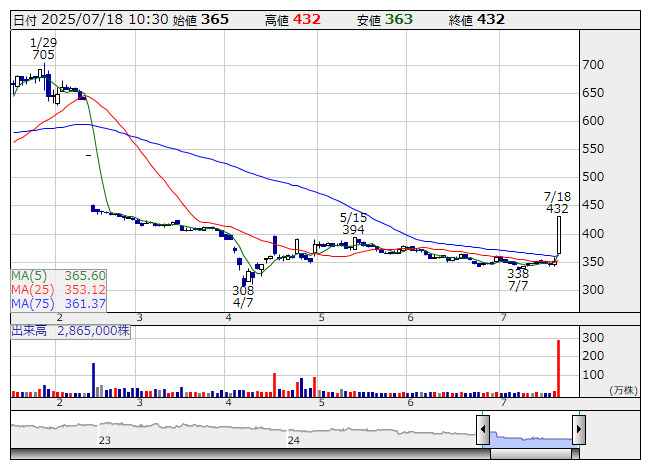 【材料】前場のランキング【寄付からの値上がり率】 (7月18日)