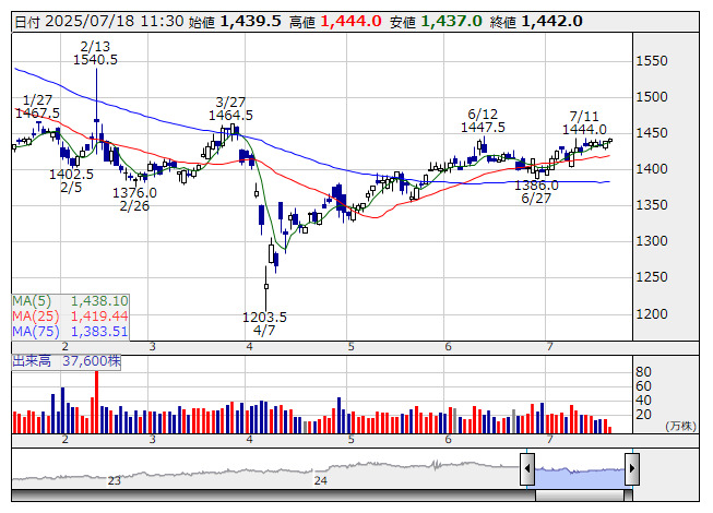 東合成 <日足> 「株探」多機能チャートより■財務省 : 7月18日受付