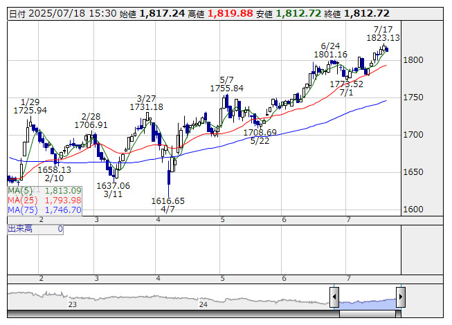 2025年07月18日15時48分 【市況】東証REIT指数先物:18日清算値=5.5ポイント安、1793ポイント REIT指数 <日足> 「株探」多機能チャートより 18日15時45分、東証REIT指数先物期近2025年9月限は前日清算値比5.5ポイント安の1793ポイントで取引を終えた。出来高は474枚だった。この日の東証REIT指数の現物終値1812.72ポイントに対しては19.72ポイント安。 株探ニュース