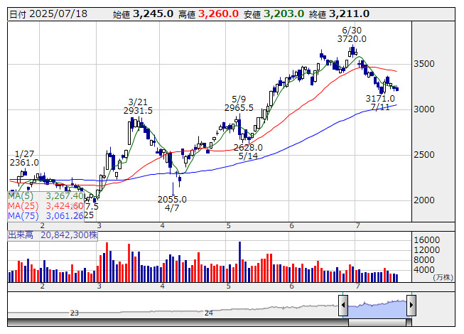 三菱重 <日足> 「株探」多機能チャートより●信用売り残減少ランキング【ベスト50】