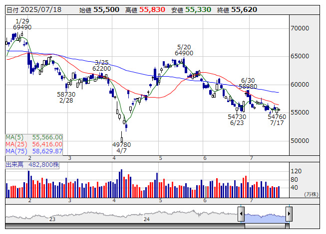 キーエンス <日足> 「株探」多機能チャートより(東証上場 4256 銘柄対象[ETF、REIT含む])