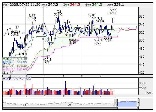 <4689> LINEヤフー 556.1 +16.3 ( +3.0%) 1