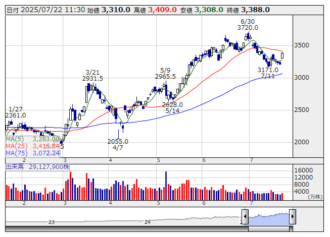 <7011> 三菱重工業 3388 +177 ( +5.5%)