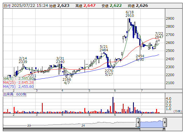日邦産業 <日足> 「株探」多機能チャートより■財務省 : 7月22日受付