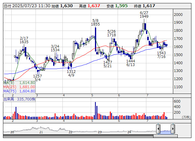 HENNGE <日足> 「株探」多機能チャートより■財務省 : 7月23日受付