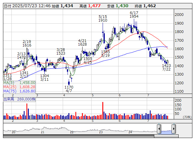 ギフティ <日足> 「株探」多機能チャートより■財務省 : 7月23日受付