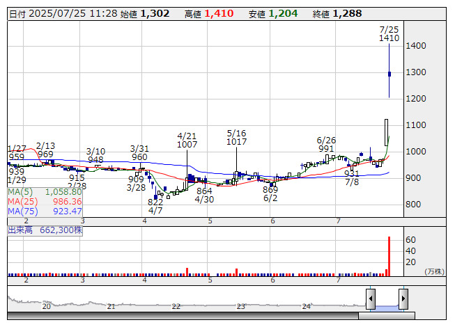 これが材料視され、翌24日の同社株はストップ高と急騰。きょうも引き続き買い優勢となっており、これを受けて買い予想数が増加したようだ。