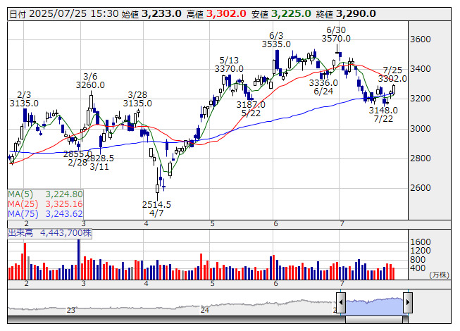 <4544> HUグループ 3251 +27 ( +0.8%)