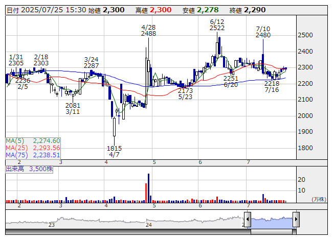 ドーン <日足> 「株探」多機能チャートより■財務省 : 7月25日受付