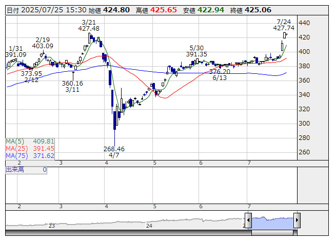 25. 医薬品(0258) +2.25 大塚HD <4578> 、エーザイ <4523> 、ペプドリ <4587>