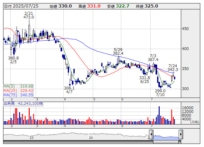 日産自 <日足> 「株探」多機能チャートより●信用売り残増加ランキング【ベスト50】