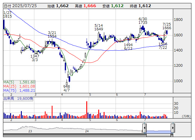タカトリ <日足> 「株探」多機能チャートより○タカトリ <6338> [東証S]