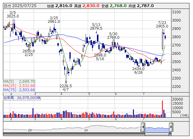 <3539> JMHD 4963 ( 18) 2,736 -39 ( -1.4%)