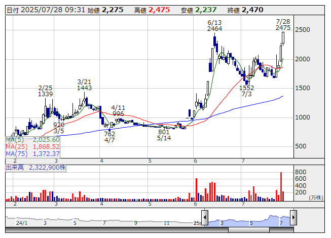 2025年07月28日09時30分 【材料】ブルーイノベが4連騰、富田林市で「ELIOS3」を活用した下水道点検技術の検証実施 ブルーイノベ <日足> 「株探」多機能チャートより ブルーイノベーション<5597>が4連騰している。前週末25日の取引終了後、大阪府富田林市で屋内点検用球体ドローン「ELIOS3」を活用した下水道点検技術の検証を実施したと発表しており、好材料視されている。 同取り組みは、人力調査が困難な管路において、安全性と効率性を両立する新技術の導入可能性を検証することを目的としたもの。検証当日には、府内約15の自治体から行政関係者が参加し、現場における技術の有効性を確認したという。 出所:MINKABU PRESS