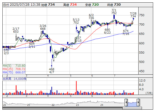 スポーツF <日足> 「株探」多機能チャートより■財務省 : 7月28日受付