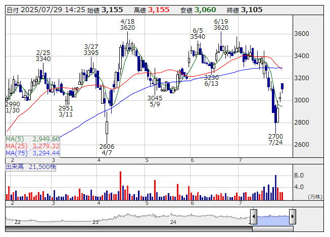 2025年07月29日14時25分 【材料】ラストワンMが大幅3日続伸、6月ストック売り上げは増収基調継続 ラストワンM <日足> 「株探」多機能チャートより ラストワンマイル<9252>が大幅高で3日続伸している。28日の取引終了後に発表した6月度の月次主要KPI(重要業績評価指標)で電気、宅配水、インターネット、その他を合わせたストック売り上げが前年同月比21.4%増の5億5000万円となり、増収基調が継続していることが好感されている。 出所:MINKABU PRESS