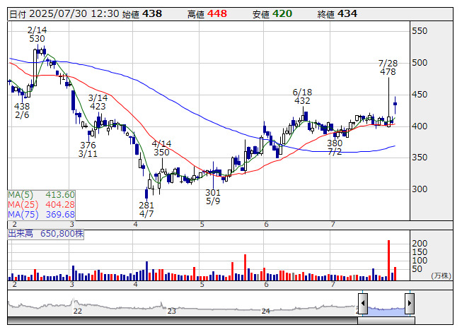 ステラファ <日足> 「株探」多機能チャートより