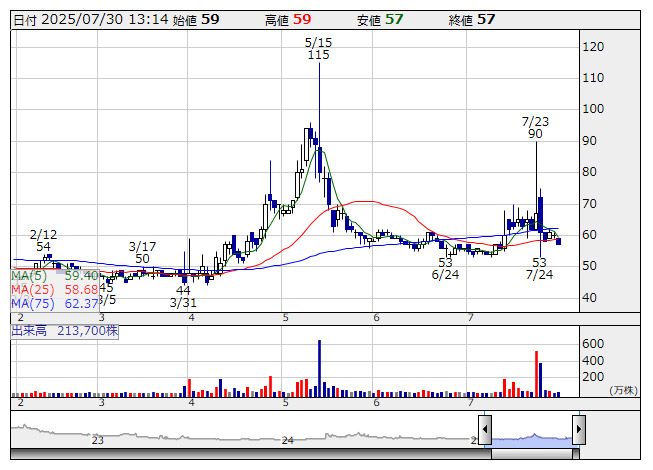 OKウェイヴ <日足> 「株探」多機能チャートより■財務省 : 7月30日受付