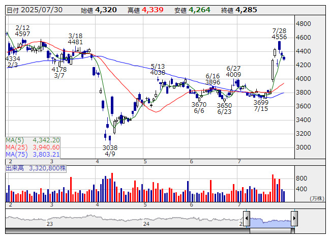 ファナック <日足> 「株探」多機能チャートより(東証上場 4256 銘柄対象[ETF、REIT含む])