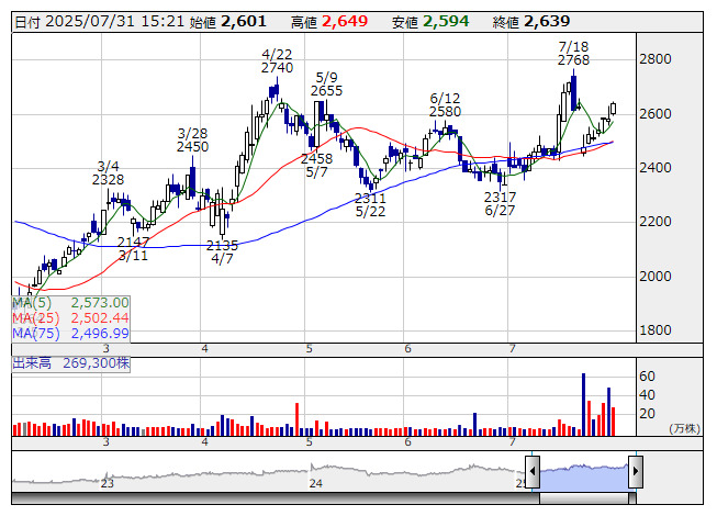トランザク <日足> 「株探」多機能チャートより■財務省 : 7月31日受付