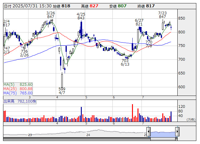 2026年3月期通期については、同日、米トランプ政権の関税影響を織り込み、連結業績予想の修正を発表した。売上高が 6,800億円(前回予想据え置き)、営業利益が155億円(前回予想▲5億円)、経常利益が155億円(前回予想▲5億円)、親会社株主に帰属する当期純利益が115億円(前回予想▲5億円)としている。