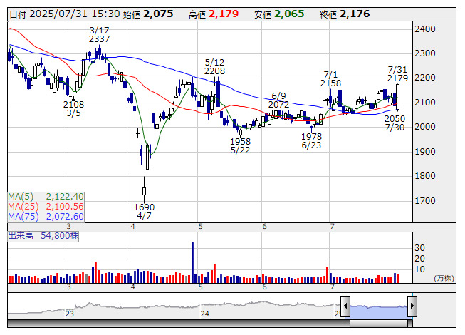 中部鋼鈑 <日足> 「株探」多機能チャートより中部鋼鈑<5461>は30日、2026年3月期第1四半期(25年4月-6月)連結決算を発表した。売上高が前年同期比31.1%減の120.42億円、営業利益が同87.8%減の3.40億円、経常利益が同82.8%減の4.92億円、親会社株主に帰属する四半期純利益が同83.6%減の3.35億円となった。