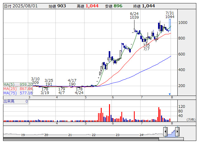 【材料】前場のランキング【値上がり率】 (8月1日)