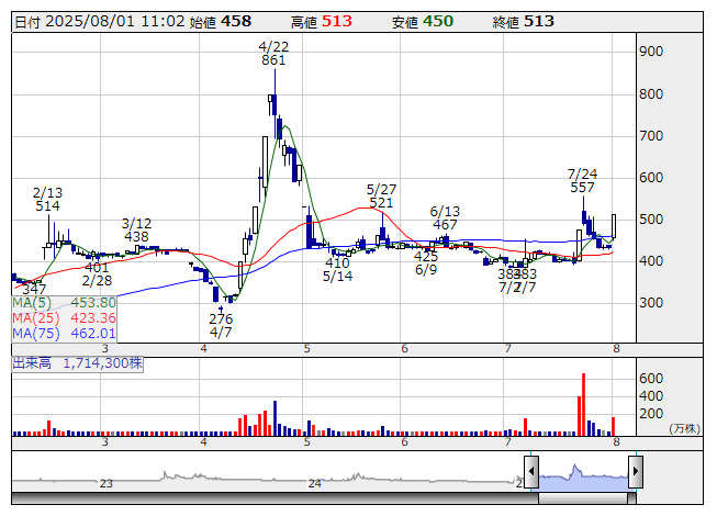 一方、Chordia Therapeutics<190A>、PRISM BioLab<206A>、オルツ<260A>、アルファクス・フード・システム<3814>、クリングルファーマ<4884>が年初来安値を更新。イメージ情報開発<3803>、Hmcomm<265A>、MTG<7806>、TDSE<7046>、グロービング<277A>は値下がり率上位に売られた。