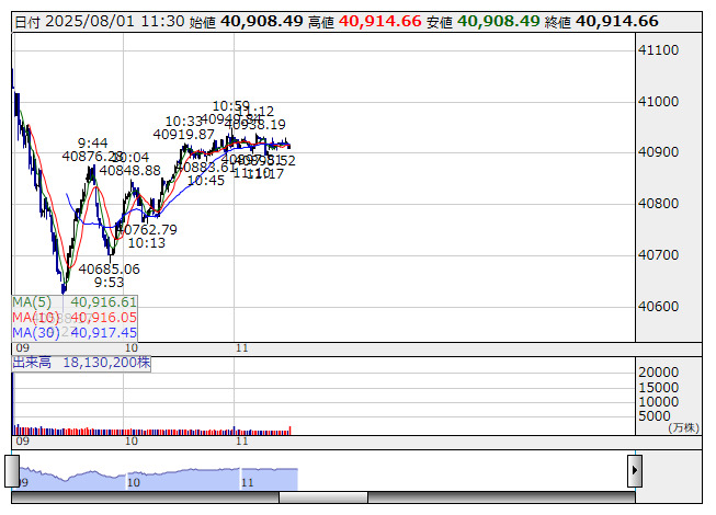 日経平均 <1分足> 「株探」多機能チャートより日経平均 : 40914.66 (-155.16)