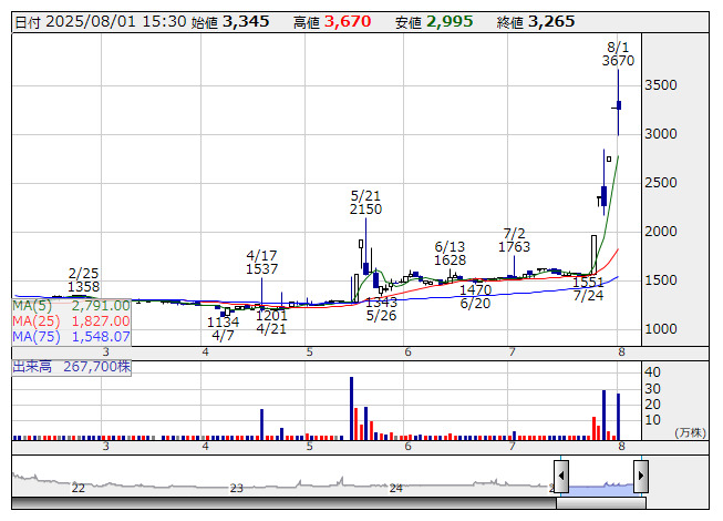 1. <9241> FLネット 東証G 1501倍 ( 1,501) 3265 ( -0.3 ) 前日はストップ高配分で約定は1回