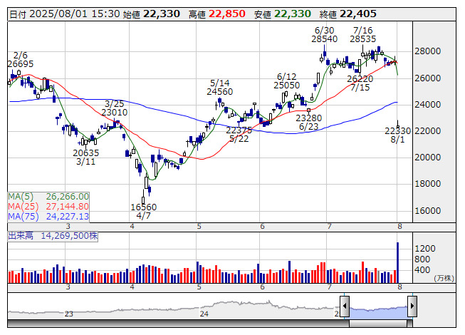 【材料】本日のランキング【値下がり率】 (8月1日)