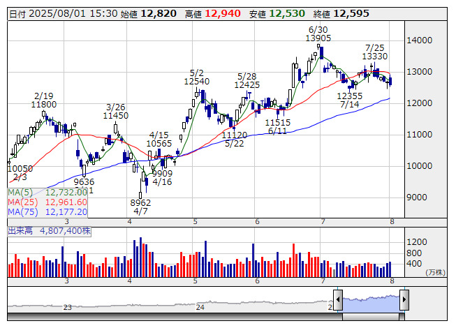 任天堂 <日足> 「株探」多機能チャートより
