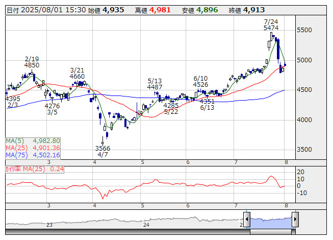 【特集】下値抵抗25日線に接近【上昇トレンド】銘柄 21社 <テクニカル特集> 8月1日版