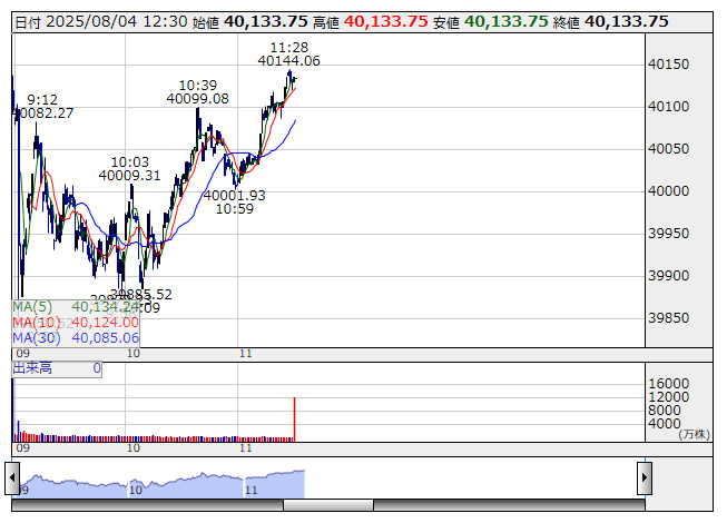 米株市場を横目に、本日の日経平均は680.79円安の40118.81円と続落して取引を開始した。国内企業の決算発表が佳境を迎えるも、これまでの主力半導体関連株などの減益決算・見通し下方修正などで市場の冷え込みが続いている。さらに、米雇用統計の不調やトランプ大統領の原子力潜水艦配備の報道による地政学的リスクへの警戒感なども重しとなり、その後も横ばいのこう着した値動きとなった。