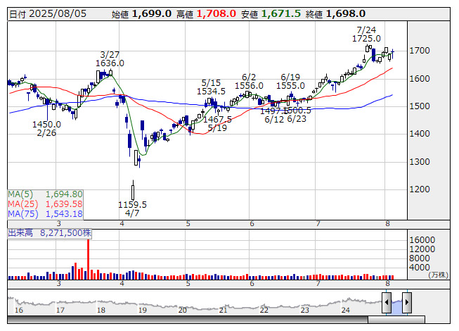 米国株式市場は反落。ダウ平均は61.90ドル安の44111.74ドル、ナスダックは137.03ポイント安の20916.55で取引を終了した。早期利下げ期待を受けた買いが続き、寄り付き後、上昇。トランプ大統領がインタビューで、医薬品、半導体に対する関税を近く発表すると言及、その後、ISM非製造業景況指数を受けた景気見通し悪化で、下落に転じた。相場は終日軟調に推移し、終了。